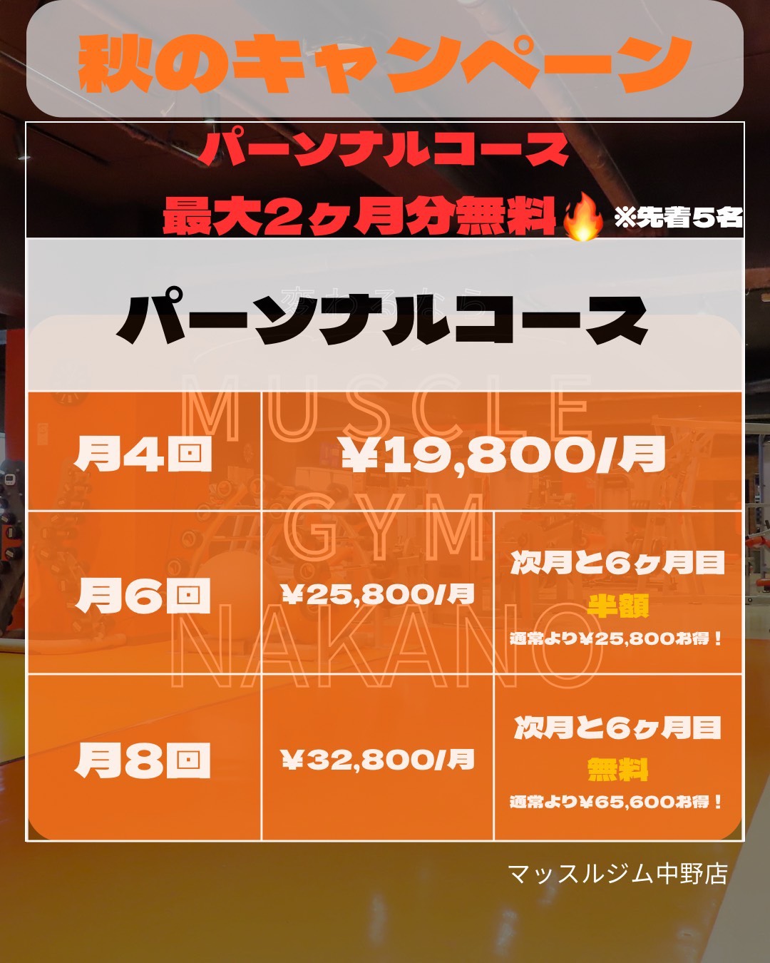 パーソナル月8回(1回45分)&24時間ジム | 36,800円 / 月払い | |